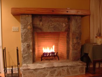 This is an example of a field stone fireplce done by Rodney Masonry.