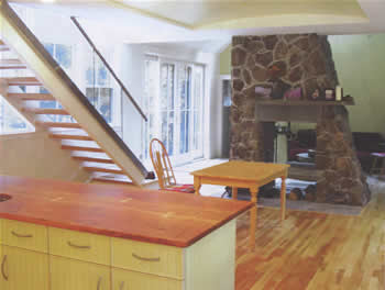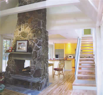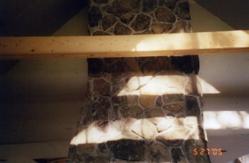 This is a fireplace on Peaks Island is covered witha thin natural field stone.